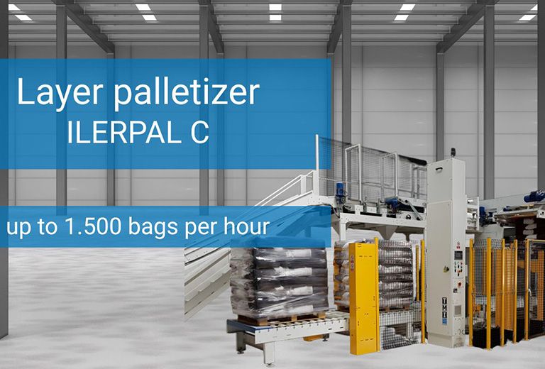 High-performance palletizer for efficient and precise palletizing of bags with five-sided layer compaction, no bag overlap Bag feed: High infeed, capacity up to 1,500 bags/hour.