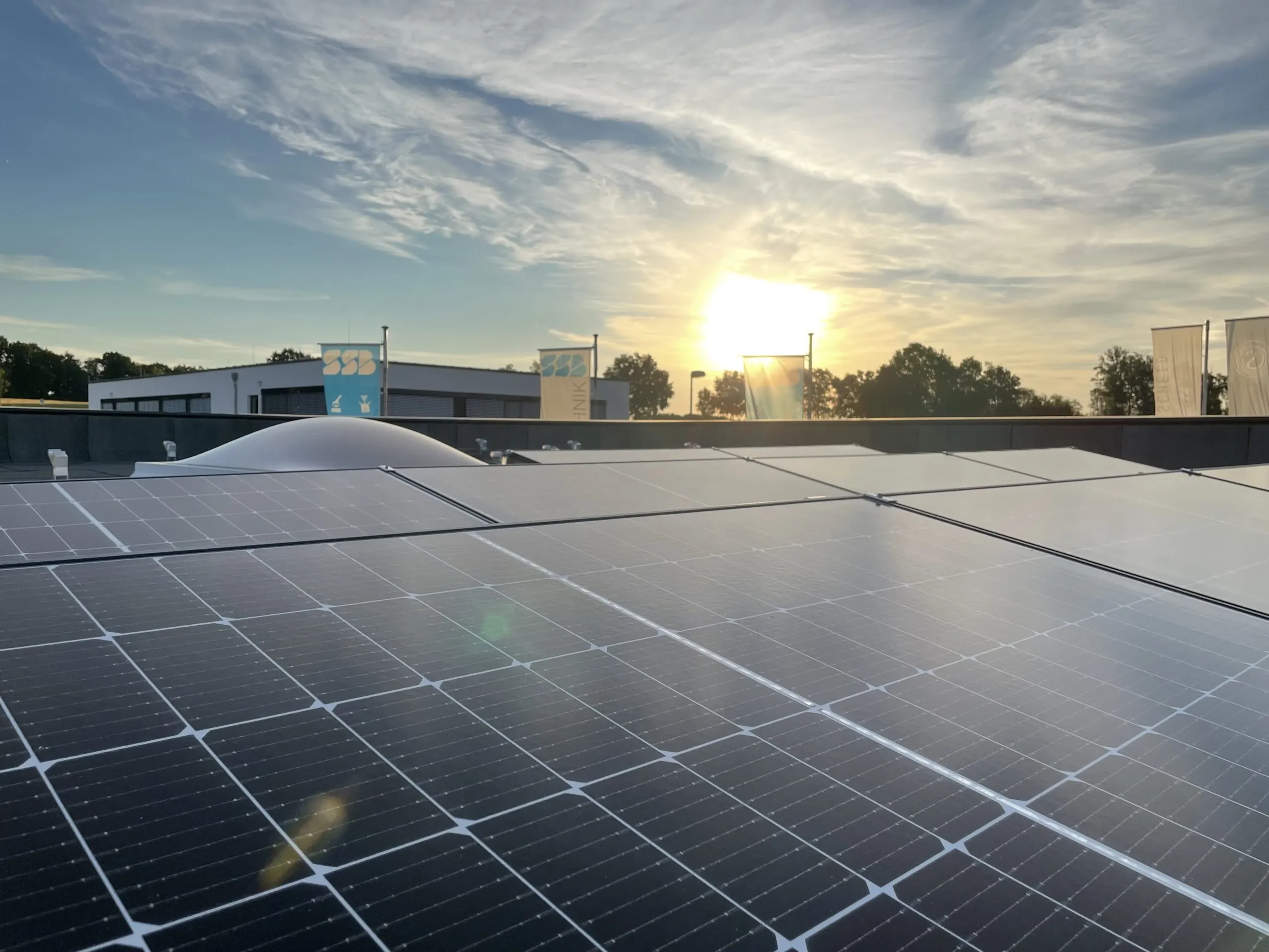Noch mehr grüner Strom für SSB. Ein Blick in die Abendsonne vom Dach auf unsere nun erweiterte und seit Jahren bestehende Solaranlage. Ein kleiner Beitrag zum Umweltschutz.