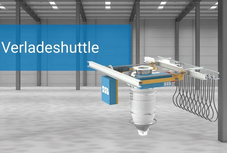 Automatisches Verladeshuttle für pulvrige und körnige Produkte.