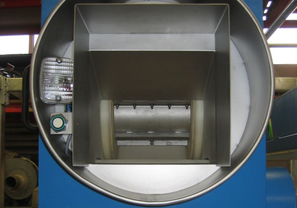 Wesentlich für eine optimale Beschleunigung des Materials ist die Länge des Fördergurtes sowie der Radius der Trommel. Es kommt eine Trommel im Durchmesser von 360 mm mit einem 250 mm breiten und 70 mm tiefen Produktkanal zum Einsatz. Um dem Fördergurt Stabilität und eine bestmögliche Auflage zu geben, sind die Seitenstege 60 mm breit ausgelegt.