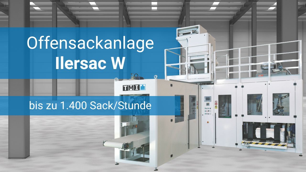 Absackautomat für offene gewebte PP Säcke mit oder ohne Seitenfalte. Die Ilersac W steht für maximale Effizienz, Präzision und Flexibilität im Absackprozess. Als vollautomatische Verpackungsanlage für offene Säcke ist sie speziell für pulverförmige oder körnige Produkte entwickelt worden – perfekt geeignet für Branchen wie Lebensmittel, Chemie oder Tiernahrung. Dank ihres modularen Aufbaus lässt sich die Ilersac W optimal an Ihre Produktionsanforderungen anpassen.