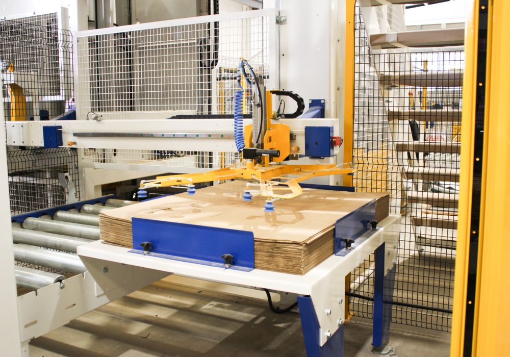 Optional Kartonagen-Spender für leere Paletten und/oder beladene Paletten.