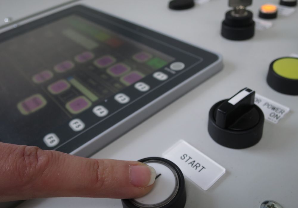 Der Okura Ai1800 wird über das Bedienpanel gesteuert. Nach dem Einschalten führt er eine Referenzfahrt aus, danach können Programme geladen oder bearbeitet werden. Bewegungen wie Position, Orientierung und Geschwindigkeit werden schrittweise festgelegt. Das System überwacht dabei ständig Sensoren und Sicherheitsbereiche und stoppt bei Hindernissen automatisch.
