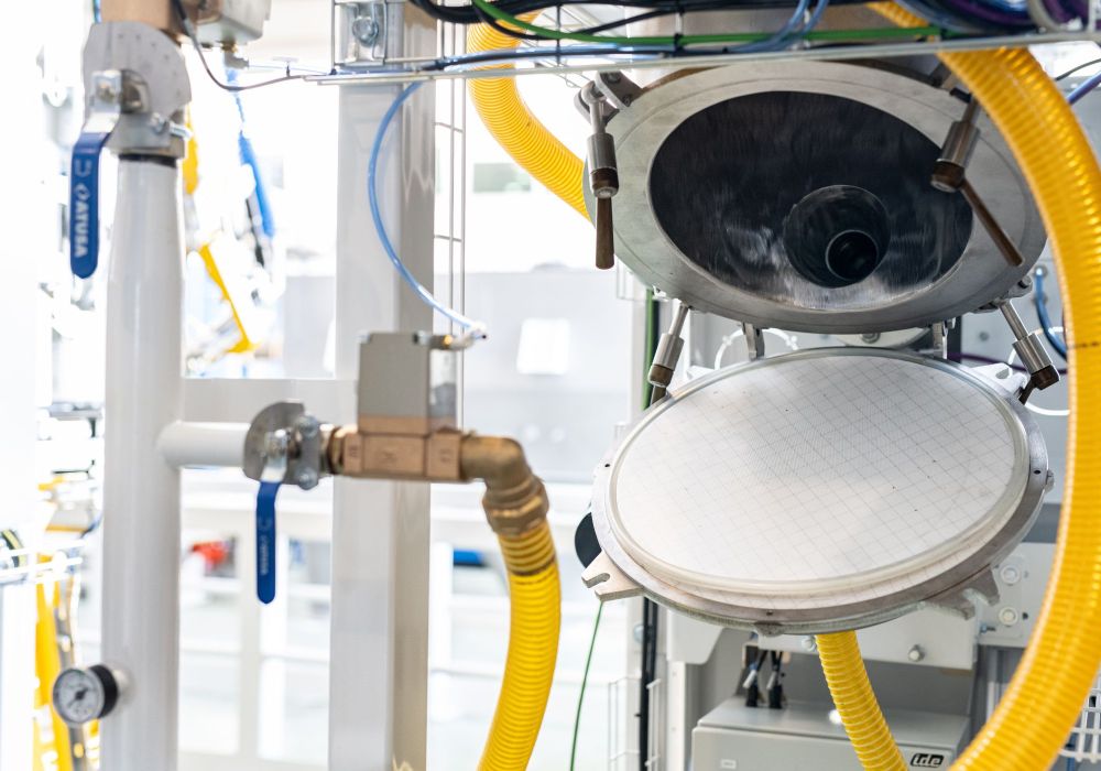 Um die Befüllstation werden auftretende Stäube abgesaugt.