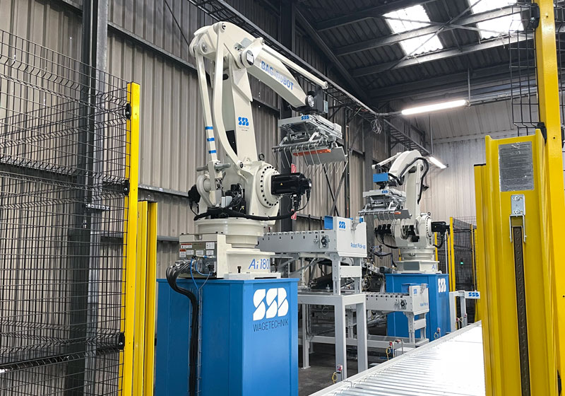 Hochleistungspalettierroboter/ Sackpalettierer mit Leistungen bis zu 1.200 Sack/ Std. neu im Portfolio und erste Projekte.